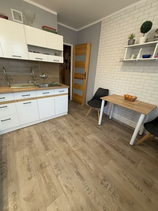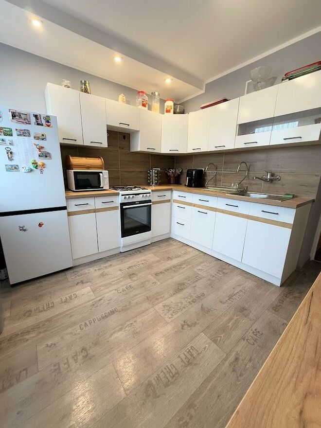 W kuchni podwieszane sufity, oświetlenie ledowe, po wymianie instalacja elektryczna. W cenie pozostają meble kuchenne oraz sprzęt AGD.