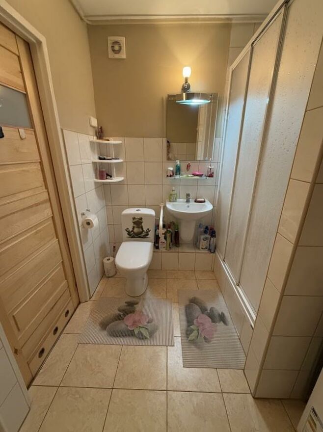 Układ lokalu to 3 odrębne pokoje, kuchnia, łazienka, wc, duży przedpokój.